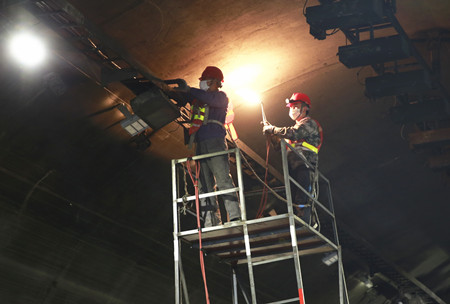 當天工程主要是進行燈具、風機、布管線、火報、廣播、攝像頭控制箱的安裝,接線調試,瓷磚修補,洞壁注漿、地面病害處置、垃圾清理等。據悉,截止當天晚上10:30,隧道內燈具、風機已全部安裝完畢,黃土嶺隧道群整治已完成總工程量的60%。
