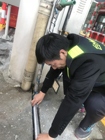 圖為工作人員自查崗亭報警器 此外,工作人員對收費區域內的消防、交通、崗亭設施設備,以及票證、通行費等安全情況進行了一次自查,確保安全用電,做好消防和防盜措施,并對當班收費員進行現場稽查,檢查大家在當班期間的崗亭環境是否衛生,臺面是否整齊,著裝是否統一,有無佩戴上崗證,儀表舉止是否規范,文明用語是否親切,以及抽屜大額現金有沒按規定放入保險箱等。大家的合力檢查和相互配合,為春運安全暢通、防寒防凍工作提供了強有力的保障。 陳瑩