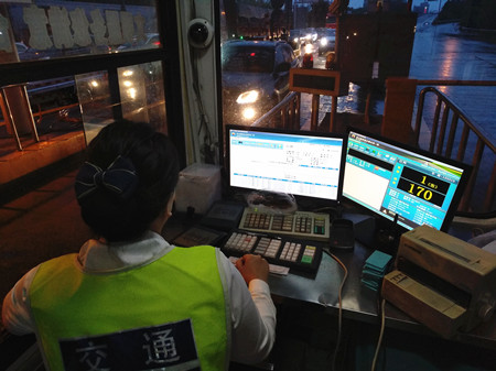 圖為高峰時期的ETC出口車道情況 為保暢通,負責ETC車道的工作人員要時刻盯著過往的車輛,對于ETC操作系統上顯示的誤闖車,他得馬上示意司機停車,用人工操作系統讀卡付費。遇ETC車輛可直接通過,不必停車取下OBU中的ETC卡再人工刷一遍,大大節省了ETC車輛在非正常情況下的通站時間。看著ETC車道源源不斷的車流,收費員小孫一邊揉著眼睛一邊說:“操作起來還蠻順手的,就是有的司機開著遠光燈過來,要第一時間辨別車牌號與電腦流水相不相符,眼睛被刺得直冒金星,很痛很吃力。” 在ETC車道給非ETC車輛增加一個臨時通道的大膽嘗試,一改以往誤闖車輛進入ETC車道后要么引導到旁邊人工車道收費,要么就是先手動放行,再將通行卡拿去人工車道作整車插入操作,不僅需要登記和旁站等手續,又給后方車輛造成不少的等待時間。而現在的一個出口,兩個操作系統,既能在第一時間讓誤闖車輛順利通行,又能保證ETC車輛不用人工刷卡就能正常地快速通過。在飽和狀態下,其通過率較之前提升12%,通行效率顯著提升,有效減少了內廣場擁堵,減輕主線分流壓力。 鄭瑛芝