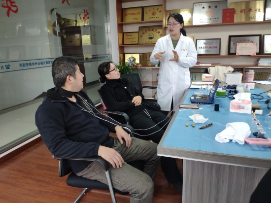 “低頭族頭部容易供血不足,長(zhǎng)期以往會(huì)得頸椎病的。來(lái),我給你按一會(huì),然后用理療儀針灸一會(huì)。