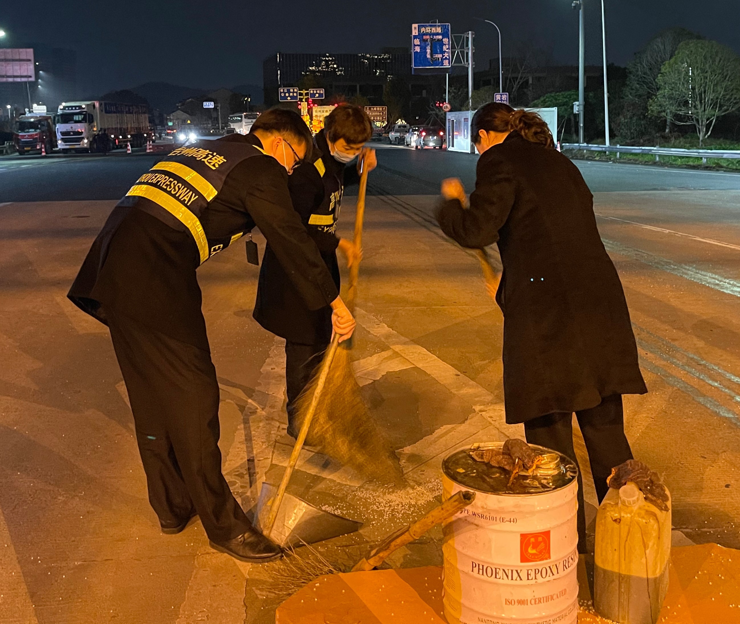 (圖為工作人員在清掃) 一時(shí)之間,車(chē)道路面上落滿(mǎn)大量的塑料顆粒,考慮到夜色已深,ETC車(chē)道上行駛的車(chē)輛速度大多很快,萬(wàn)一司機(jī)沒(méi)有及時(shí)發(fā)現(xiàn)前方道路上的灑落物,極易造成輪胎打滑,嚴(yán)重影響行車(chē)安全。情況緊急,為了后續(xù)通行車(chē)輛的安全,收費(fèi)班長(zhǎng)立刻關(guān)閉了該ETC車(chē)道,并放置警示標(biāo)志,然后將這一情況上報(bào)給監(jiān)控中心和收費(fèi)所值班人員。不等清潔人員到來(lái),收費(fèi)員羅時(shí)杰從車(chē)道的工具房拿出掃帚和簸箕,主動(dòng)開(kāi)始清掃工作。隨后其他不坐崗的收費(fèi)員也投入到了清掃工作中,這支臨時(shí)清掃小隊(duì)在沒(méi)有任何人的領(lǐng)導(dǎo)下自發(fā)地組織起來(lái)。這時(shí),從高速上完成機(jī)電養(yǎng)護(hù)工作的機(jī)電班工作人員正巧路過(guò),他們看到這一幕立刻將車(chē)停靠在一邊,加入清掃隊(duì)伍。盡管散落的塑料顆粒數(shù)量較多,但在大家的共同努力下,車(chē)道終于被清理干凈,恢復(fù)了正常通車(chē)。 春日的夜晚微風(fēng)拂過(guò),已有春的暖意,而更暖的是這一幕在春夜里的一個(gè)個(gè)身影。大家因?yàn)橐患∈露墼谝黄穑欢踩珶o(wú)小事。所有人心系安全,為所有過(guò)往車(chē)輛保暢保安全,為臺(tái)州高速貢獻(xiàn)自己的一份力。 崔翔浩 吳侃霓