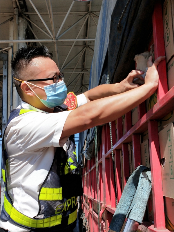 檢查綠農車,遇到攀爬驗貨時,車輛欄桿因高溫炙烤至少在四五十度以上,臺州南收費所班長周冬子笑著說:“現在的車欄桿都‘辣手’了,腳底板也像踩了‘風火輪’。” 話音還未落,只見他蹭蹭幾下,已然爬上貨車,一邊檢查貨物一邊用袖子蹭掉臉上豆大的汗珠,被曬得黝黑發(fā)紅的皮膚在烈日下格外醒目。綠農車開走后,他顧不上滿身汗水,拿起了掃把開始打掃灑落在車道上的綠農產品。因為他知道,這些灑落的農產品,如不及時清理,在太陽曝曬后將會更加刺鼻,影響收費站的形象。 熱浪滾滾,卷不走收費員們工作的熱情;夏日炎炎,燃不盡收費員們堅守的意志。他們用執(zhí)著在高溫下書寫愛崗敬業(yè),用責任和擔當保障著高速的平安暢通。 項丹穎
