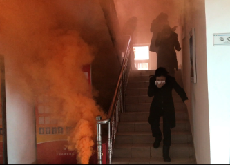 圖為逃生現(xiàn)場 在課堂上,陳教員通過近期火災(zāi)事故案例分析,生動地講解了遇到突發(fā)性火災(zāi)事故時的應(yīng)急處理措施和如何做好高樓逃生自防自救及車輛的防火常識及如何應(yīng)對車輛自燃和常見消防器材識別、使用及保養(yǎng)維護等消防安全知識。并結(jié)合單位實際情況,講述了收費所可能會遇到的幾種火災(zāi)事故及應(yīng)急措施。 隨后,溫嶺西收費所組織全體員工模擬親身體驗火災(zāi)逃生演練。根據(jù)安排,以所長王小勇為組長,各所助、班長為成員的緊急疏散應(yīng)急領(lǐng)導小組成立,明確逃生線路以及集合地點等演練內(nèi)容。一切準備妥當后,員工分布在收費所管理房各處,模擬日常辦公。隨著煙霧彈的蔓延,逃生演練正式開始。首先由發(fā)現(xiàn)火情者撥打模擬火災(zāi)報警電話,報告起火具體位置與火勢的大小,請求支援,同時報告所長,通知人員離開現(xiàn)場。參演人員立即用濕毛巾捂住口鼻,彎下身子盡量避開濃煙,進行緊急撤離。只見疏散引導員葉俊在三樓樓梯口指揮大家撤離,統(tǒng)計疏散人數(shù),清查本層各寢室、洗漱間后撤離;疏散引導員陳豐平在二樓樓梯口指揮人員撤離,統(tǒng)計疏散人數(shù),清查本層各辦公室、寢室、衛(wèi)生間后撤離;疏散引導員李寧在所大門指揮人員撤離,統(tǒng)計疏散人數(shù),清查本層會議室,寢室后撤離。撤離人員達到指定集合地點,由狄文琦清點核實人數(shù),匯總后向所長匯報情況。所長王小勇確認全體人員安全撤離后,對本次演練進行點評,并宣布逃生緊急疏散演練結(jié)束。 通過本次演練,大家紛紛表示明白了火災(zāi)預防措施,了解了常用的消防設(shè)備,懂得更多基本消防常識,并學會撲救初期火災(zāi)、組織人員疏散、火災(zāi)逃生自救等知識和技能,為今后的生活和工作多了一份安全保障。 陳瑩