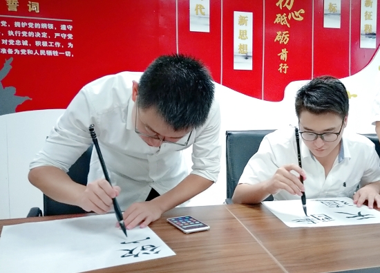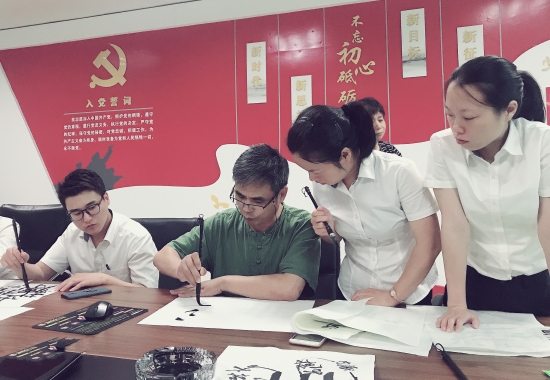圖為學(xué)員練習(xí)書法 通過老師這種直觀的授課方式,學(xué)員們很快領(lǐng)會了書寫的基本節(jié)奏和韻律,每個(gè)人認(rèn)真臨摹、創(chuàng)作,用眼睛感受書法美、用練習(xí)探索書法美、用心靈領(lǐng)悟書法美、用手創(chuàng)造書法美,共同享受了一場別開生面的書法盛宴。 此次學(xué)習(xí)使大家掌握了更多書法理論知識和書寫本領(lǐng)技能,強(qiáng)化了員工們對書法藝術(shù)的欣賞和思考,也進(jìn)一步增強(qiáng)了員工間的凝聚力和吸引力。 鄭霞霞