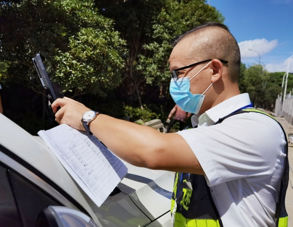 這是征費(fèi)四班班長(zhǎng)鄭星和駕駛員的對(duì)話,他手持iPad,不停地在屏幕上滑動(dòng)著、查詢著。天氣炎熱,大貨車開(kāi)車時(shí)較為顛簸,3M膠軟化黏不牢,ETC設(shè)備容易脫落。ETC設(shè)備一旦掉落,則會(huì)提示“標(biāo)簽已失效”,就無(wú)法正常工作,不能實(shí)現(xiàn)不停車出入高速公路ETC車道,給來(lái)往司機(jī)和收費(fèi)人員增添了很多麻煩。為全力配合ETC服務(wù)需要,鄭星冒著酷暑高溫,不厭其煩地幫著司乘人員解決問(wèn)題,一天下來(lái)工作服濕了又干,干了又濕,他就是臺(tái)州高速上的最美堅(jiān)守者。