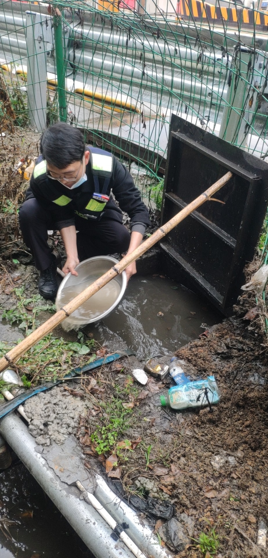 找出原因后,鄭星趕忙跑到所里取來一個水盆和一根木桿子。他用木桿支起排水坑上的蓋板,將坑里的積水一盆一盆地舀到旁邊的排水溝里。引導完車輛的林華平也過來協助鄭星。雖然此時外面下著雨,但他們全然沒顧上,只盼著舀水這個措施能夠有效,11號車道能夠早點恢復使用,進口秩序能夠早點恢復正常。 最后在鄭星和林華平的冒雨搶修下,排水坑里的水位總算有所下降,11號車道在關閉二十多分鐘后終于恢復使用,進口車輛也恢復暢通。 因地磅傳感器長期被雨水浸泡,可能還存在一些潛在問題。再者,排水坑里的水位雖有所下降,單憑人力實在無法在短時間內排掉剩余積水??紤]到這些問題,班長在搶修過后又將情況匯報給了維養中心,維修人員后序針對地磅問題進一步展開排查和維修工作。 趙育辰