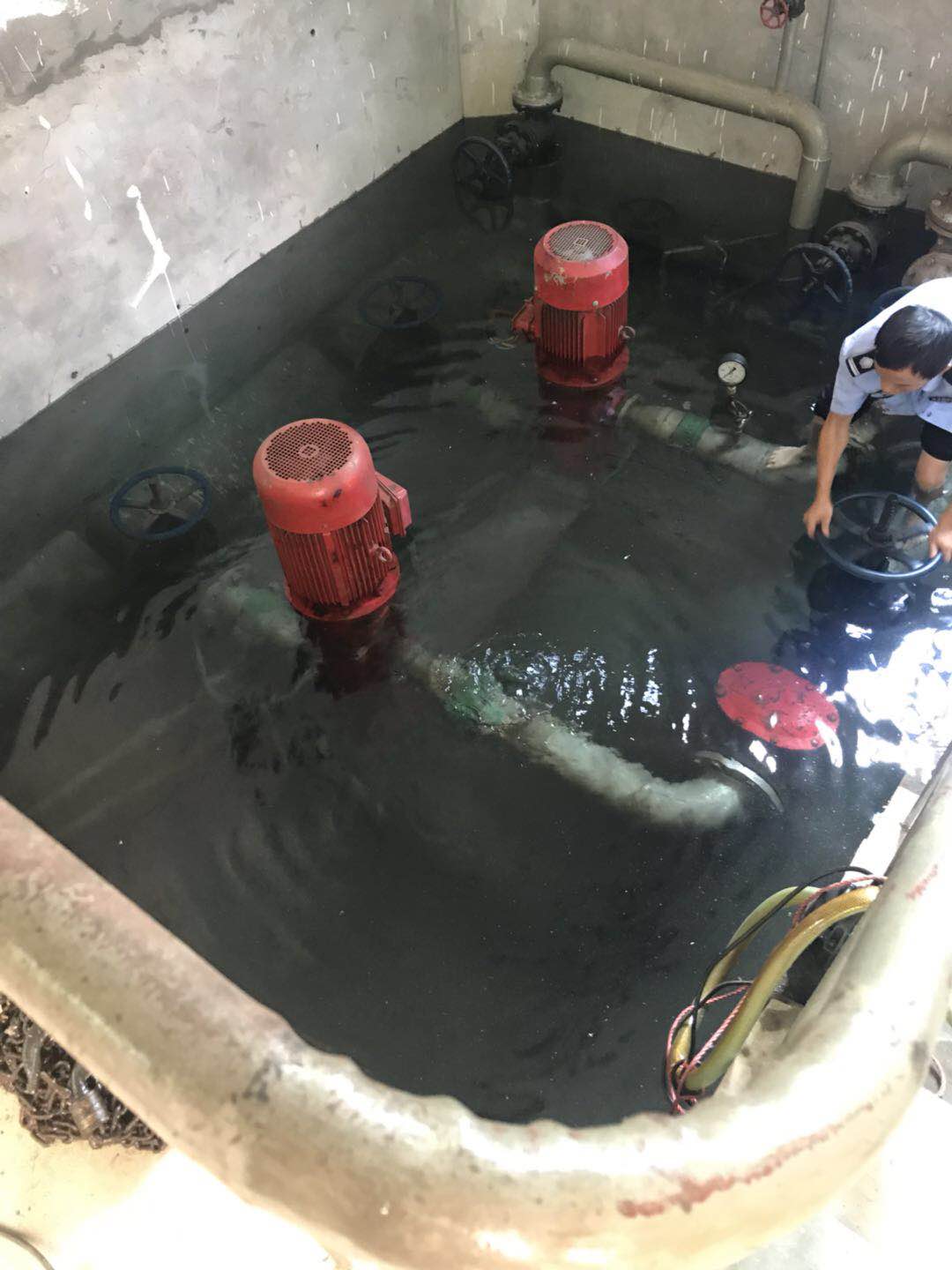 此時,陳旦平沒有多想,立即下水去關閉水泵閥門。池中有2號泵的高位水池閥門和2號泵的集水池閥門,每個泵各有兩個閥門。陳旦平在迅速關閉閥門后,由于集水池這邊地勢較低,慌忙中的他忘拿手機,手機被水浸到,他卻依舊埋頭于搶修。