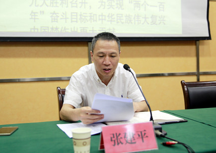 圖為公司黨委副書記、總經理張建平傳達有關會議精神
