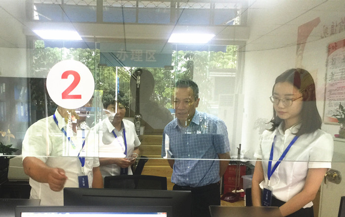 圖為集團副董事長、總經理張建平檢查椒江收購點工作開展情況 在現場,張建平聽取了收購點負責人關于股權收購試運行情況及業務人員上崗安排的匯報。當了解到短短一個上午就有十多位股東前來辦理股權轉讓手續時,張建平表示非常感謝股東們對臺州高速的支持,并要求該收購點工作人員再接再厲、扎實工作,繼續保持認真負責、熱情飽滿的服務態度,貫徹落實好各項工作部署,共同努力開創股權集中和優化工作的新局面。 線上工作人員向其詳細介紹了股權轉讓的具體操作流程。 該收購點股權集中和優化工作已進入系統試運行階段的第二天,各項工作運行平穩正常,工作秩序井然,工作人員精神狀態飽滿,為此項工作創造了良好的開端。 陳一沁