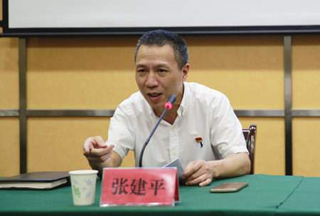 圖為集團黨委副書記、總經理張建平傳達王昌榮書記講話精神