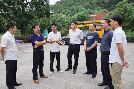 圖為集團總工程師江輝帶隊到大溪嶺山頂檢查 江輝一行先后來到黃土嶺隧道所和大溪嶺隧道所,了解隧道所的日常安全巡查工作落實情況,以及隧道內通風、照明、監控設備等附屬設施運行狀況,同時帶隊檢查各類安全設施。他要求,各隧道所要做好堆積物的清理和日常巡查維修工作。