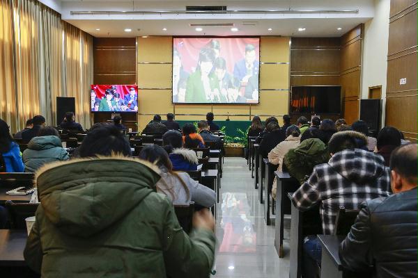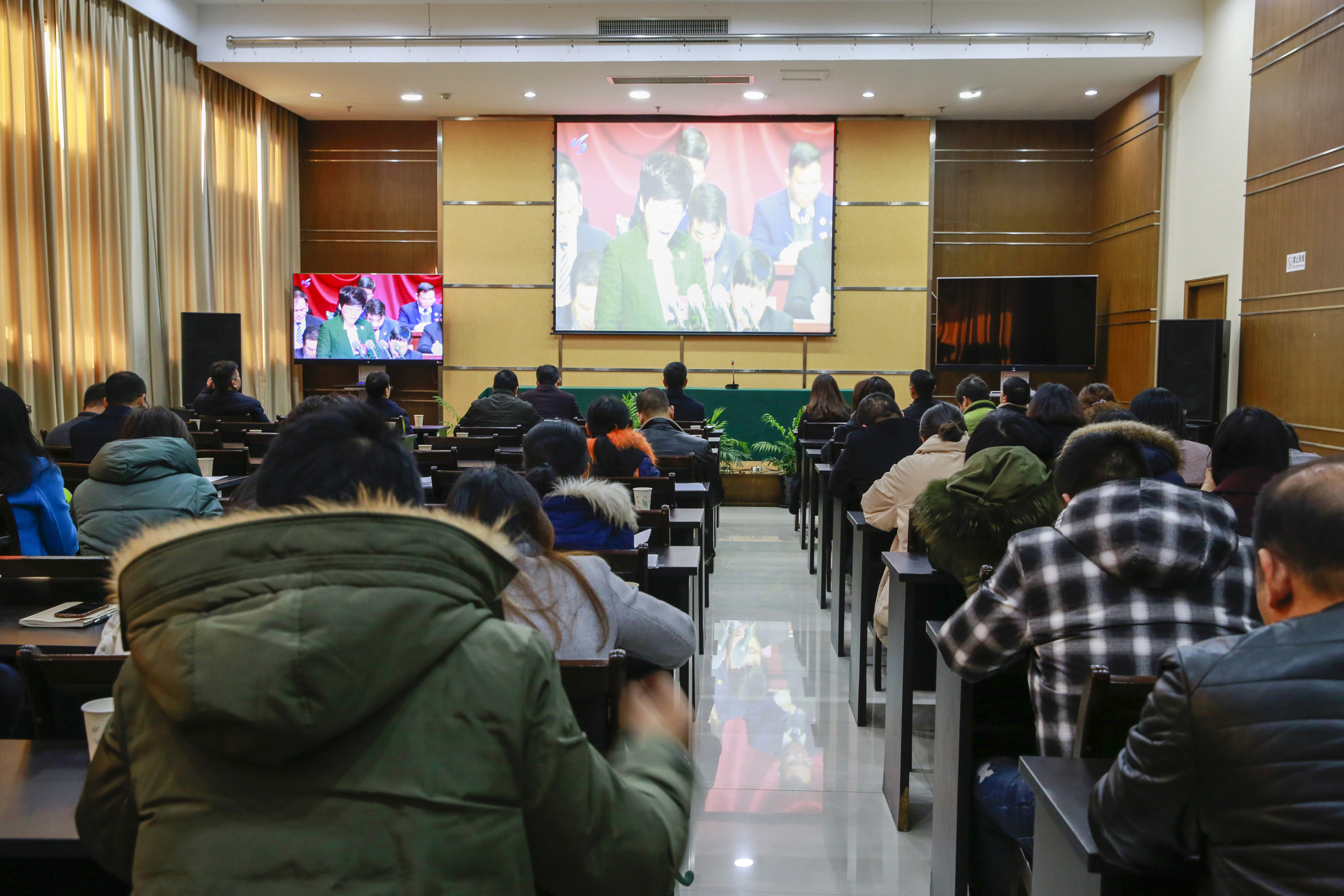 圖為參加收看大會的領(lǐng)導(dǎo)干部和職工
