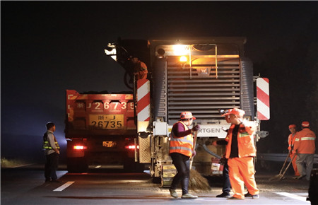 確定日期時間。施工前夕工程部負責人反復與交警、路政等部門溝通協調,渠道暢通,最終達成一致意見,為盡量避免給公眾出行帶來影響,施工基本采用夜間斷流封道方式進行。施工過程中與高速交警、路政配合默契,封道都在規定時間內開始結束,盡所能減輕施工對高速營運影響,保證路段通行能力。