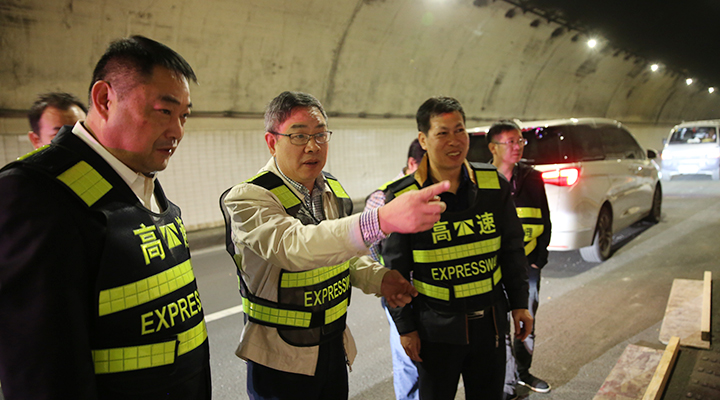 10月31日上午,臺州高速集團(tuán)董事長陳文波在總工程師江輝的陪同下,趕赴甬臺溫高速公路溫州方向黃土嶺隧道、橋梁維修加固工程施工現(xiàn)場,檢查施工進(jìn)展情況。