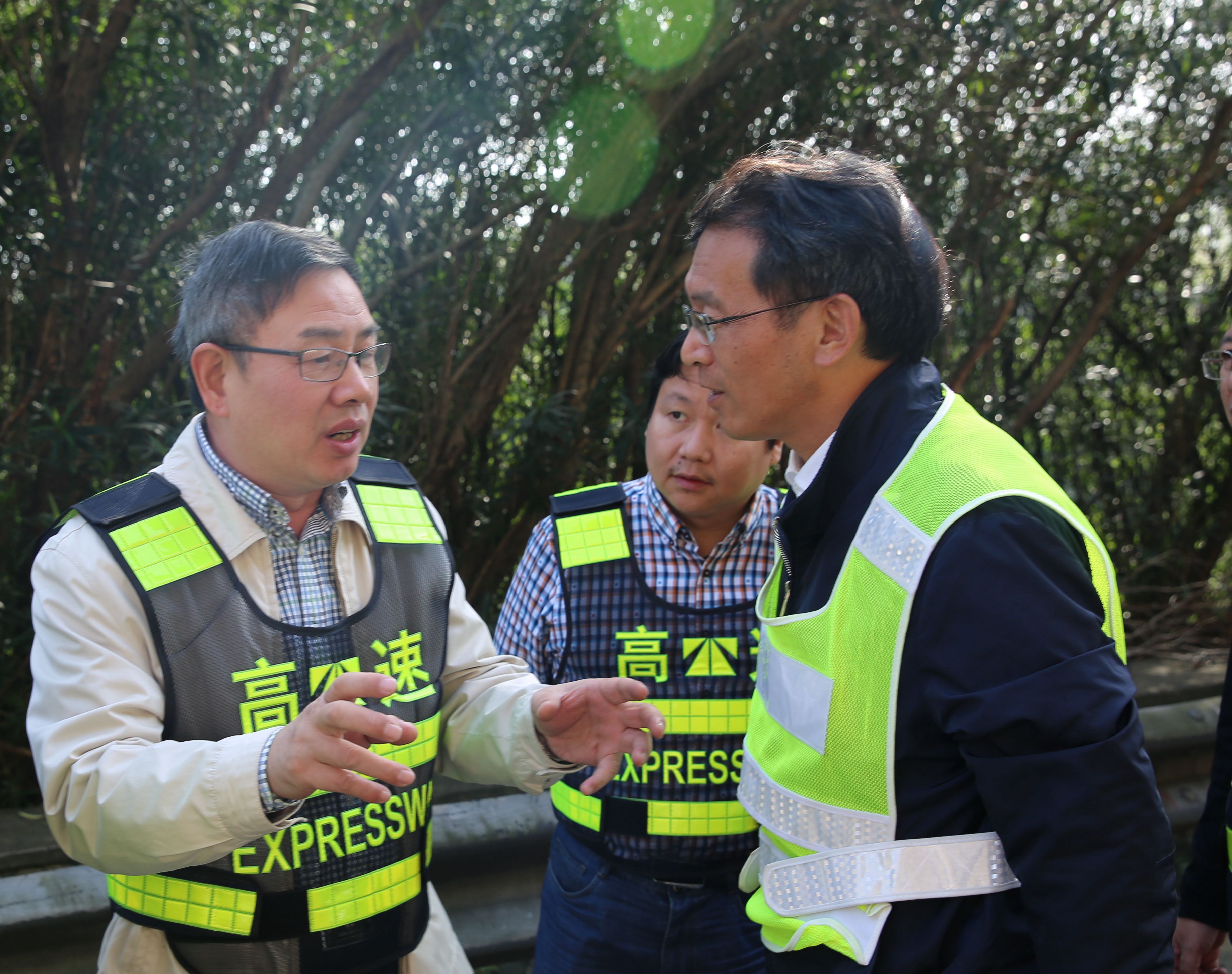 圖為陳文波在現(xiàn)場詳細(xì)了解養(yǎng)護(hù)施工情況