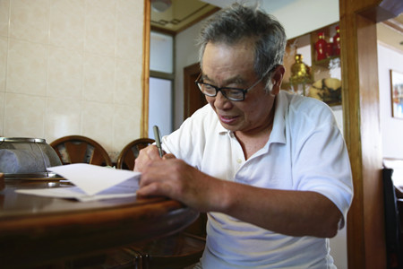 圖為老干部陳肇基簽訂股權轉讓手續