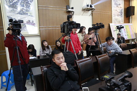 圖為集團全體領導和員工靜靜等待這一歷史性時刻