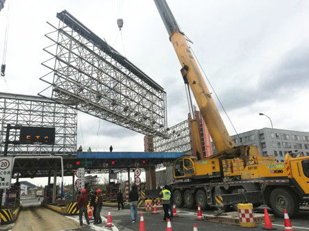 圖為臺州收費站拆廣告現場