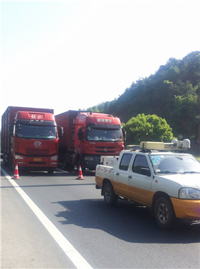 “南廣場(chǎng)有大貨車報(bào)警,據(jù)說發(fā)生事故……”4月17日凌晨3時(shí)55分,大溪嶺隧道中控室接到了臺(tái)州監(jiān)控中心緊急來電,執(zhí)勤隊(duì)立即驅(qū)車趕赴現(xiàn)場(chǎng)查勘。 巡邏車到達(dá)南廣場(chǎng)后,執(zhí)勤隊(duì)員發(fā)現(xiàn)溫向隧道進(jìn)洞1公里處,隧道頂部的攝像頭被撞損,造成電纜橋架移位,電纜下垂橫跨車道,存在嚴(yán)重安全隱患。事發(fā)突然,執(zhí)勤隊(duì)員立刻做好安全預(yù)警措施,同時(shí)聯(lián)絡(luò)集團(tuán)工程養(yǎng)護(hù)部機(jī)電維養(yǎng)中心,請(qǐng)求支援開展緊急搶修。