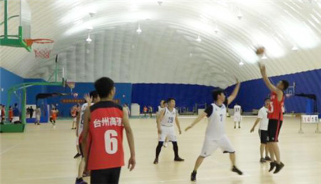 5月10日晚上,臺州體育場氣膜館內,不時傳來進球后的歡呼聲。一場由高速集團與基投集團進行的籃球友誼賽開始了?;都瘓F總經理助理鐘一鳴作為對方主力球員親自參加比賽。 隨著裁判一聲哨響,比賽開始,身穿白色球衣的基投集團籃球隊率先發起攻擊,因為是初次交手,面對不熟悉的對手,雙方失誤頻頻。很快基投籃球隊首先找到了手感,8號球員憑借身高和扎實的基本功,與隊友配合,里突外投,幫助基投籃球隊暫時領先。