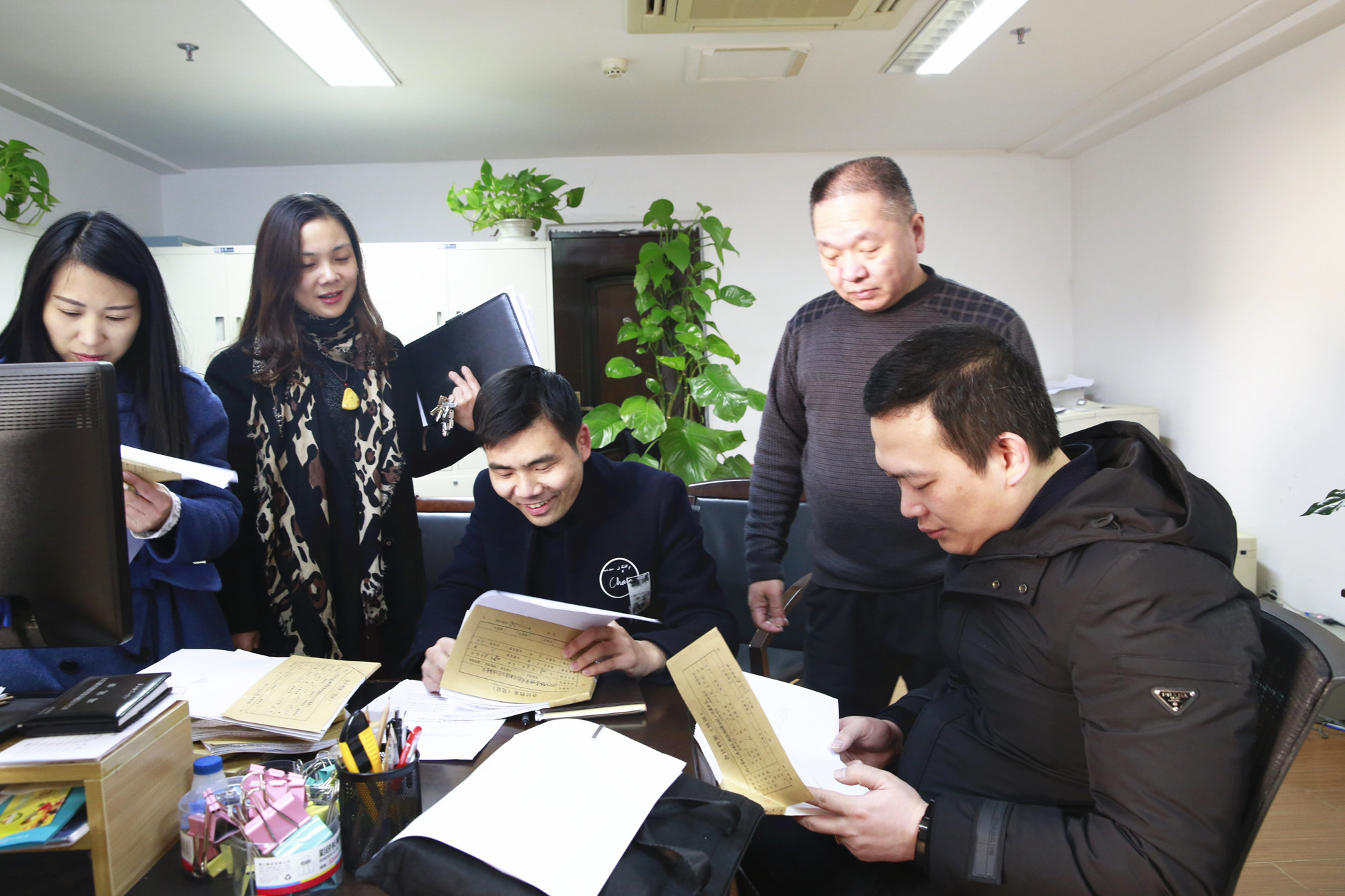 圖為檢查人員檢查黨建資料現場